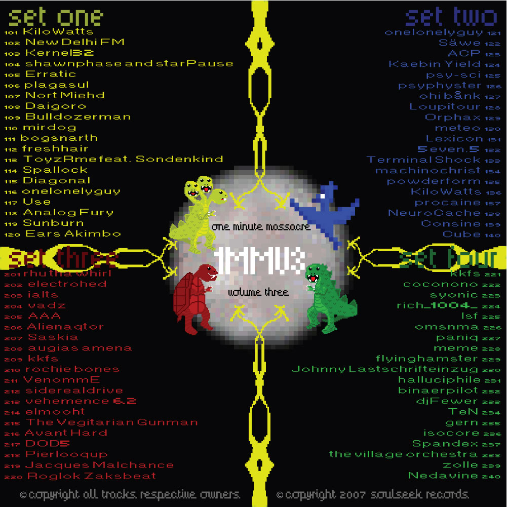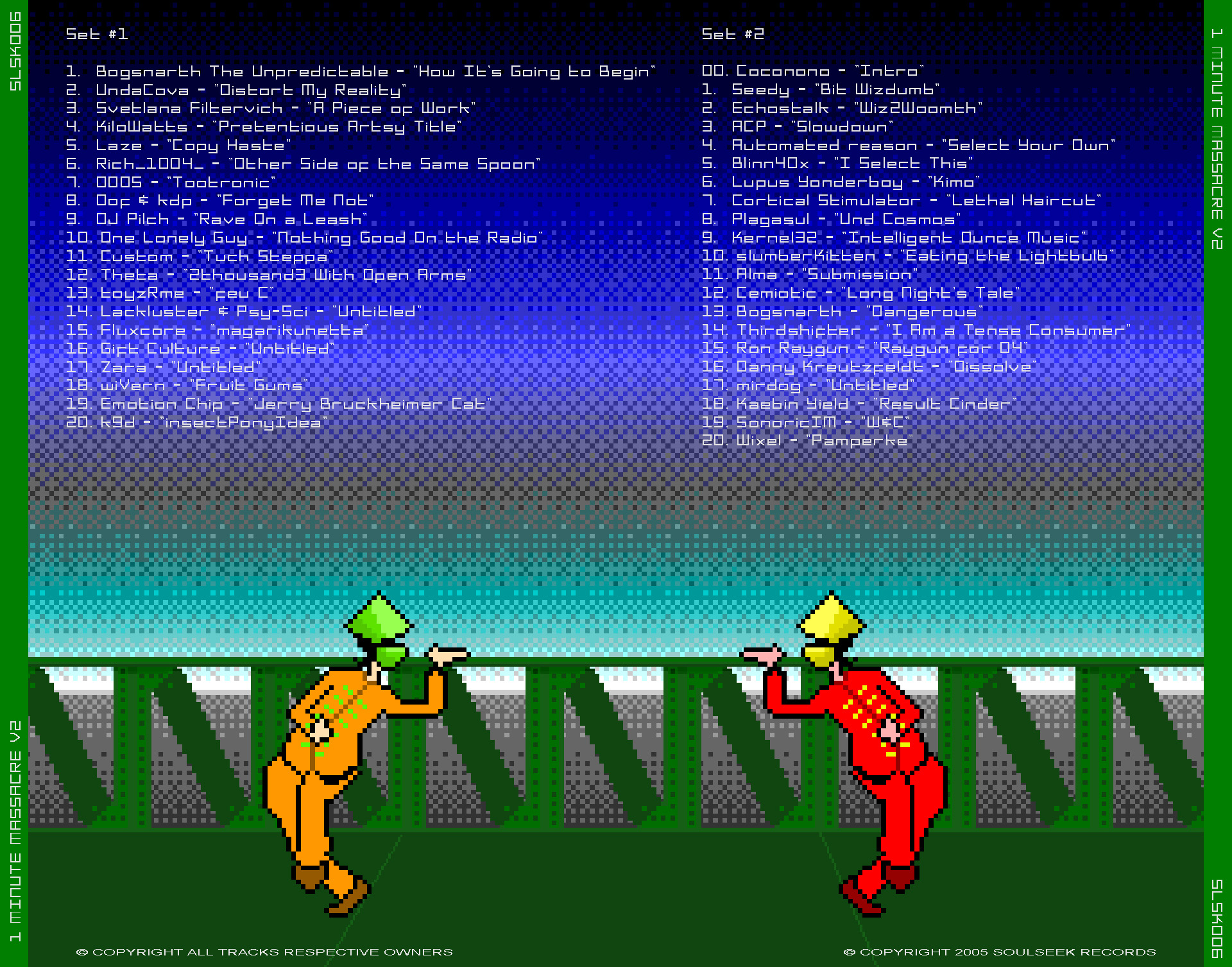 The third volume of Massacre this time 4 sets resulting in a double LP (80 Tracks). soulseekrecords. This compilation was organized by psy-sci as well.