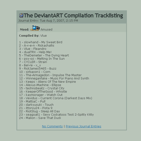 Psy-Sci was part of a music compilation organized by Deviant Art community members. Deviant Art Compilation